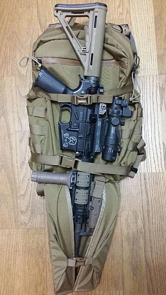 那就是可以當武器固定系統,就像下圖的圖示一樣,而且腰部的固定帶這時就派上用場了