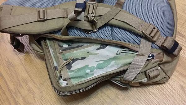 前面外層蓋板打開後,也有個夾層,這個就比較大一點,不過袋底只有做到背包本體的一半